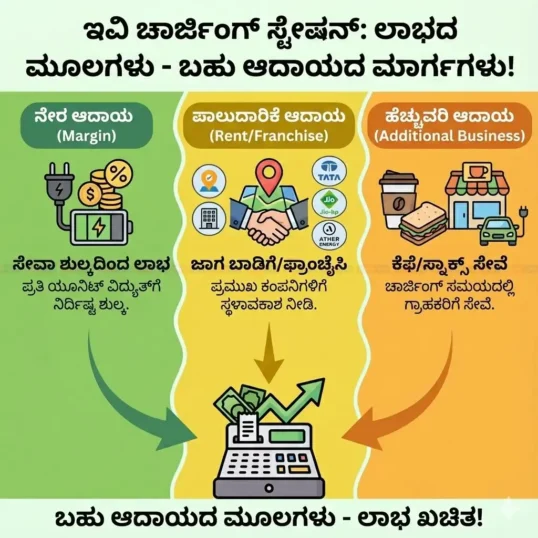 ಚಾರ್ಜಿಂಗ್ ಸ್ಟೇಷನ್ ಬಿಸಿನೆಸ್ನಲ್ಲಿ ಆದಾಯ ಗಳಿಸಲು ಮೂರು ಪ್ರಮುಖ ದಾರಿಗಳಿವೆ: