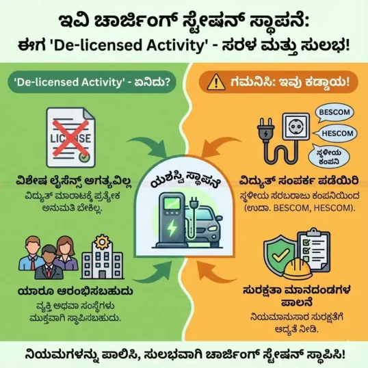 ಗಮನಿಸಿ: ಲೈಸೆನ್ಸ್ ಬೇಕಿಲ್ಲ ಎಂದ ಮಾತ್ರಕ್ಕೆ, ಮನಬಂದಂತೆ ಸ್ಟೇಷನ್ ಹಾಕುವಂತಿಲ್ಲ. ನೀವು ಸ್ಥಳೀಯ ವಿದ್ಯುತ್ ಸರಬರಾಜು ಕಂಪನಿಯಿಂದ (ಉದಾಹರಣೆಗೆ BESCOM, HESCOM) ವಿದ್ಯುತ್ ಸಂಪರ್ಕ ಪಡೆಯಬೇಕು ಮತ್ತು ಸುರಕ್ಷತಾ ಮಾನದಂಡಗಳನ್ನು ಪಾಲಿಸುವುದು ಕಡ್ಡಾಯ.