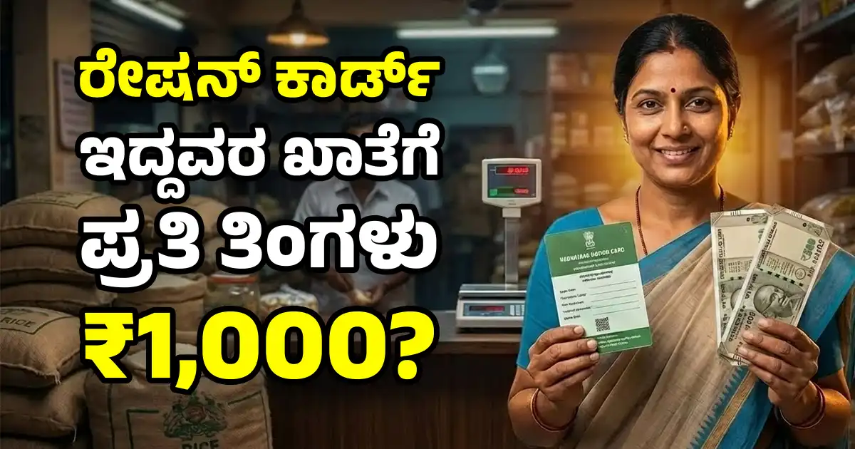 ಕಳೆದ ಕೆಲವು ದಿನಗಳಿಂದ ರಾಜ್ಯದಾದ್ಯಂತ ಸಾಮಾಜಿಕ ಜಾಲತಾಣಗಳಲ್ಲಿ ಮತ್ತು ವಾಟ್ಸಾಪ್ ಗ್ರೂಪ್ಗಳಲ್ಲಿ ಒಂದು ಸುದ್ದಿ ಬೆಂಕಿಯಂತೆ ಹಬ್ಬುತ್ತಿದೆ. “ರೇಷನ್ ಕಾರ್ಡ್ (Ration Card) ಹೊಂದಿರುವವರಿಗೆ ಸರ್ಕಾರದಿಂದ ಬಂಪರ್ ಗಿಫ್ಟ್ ಸಿಕ್ಕಿದ್ದು, ಇನ್ಮುಂದೆ ಪ್ರತಿ ತಿಂಗಳು ಅವರ ಖಾತೆಗೆ 1,000 ರೂಪಾಯಿ ಜಮೆ ಆಗಲಿದೆ” ಎಂಬುದು ಆ ಸುದ್ದಿಯ ಸಾರಾಂಶ.